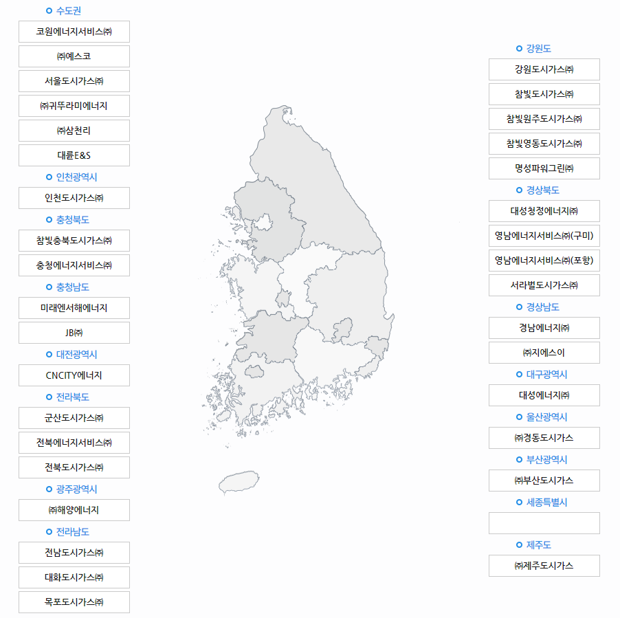 1) 도시가스는 지역마다 공급자가 다르기 때문에 자신이 거주하는 지역의 도시가스회사를 알아야 합니다.