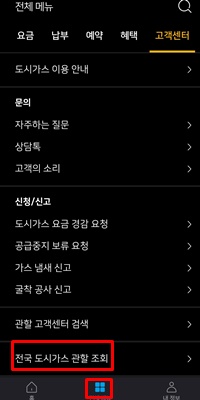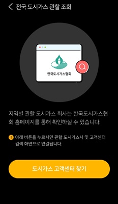 3) 모바일 가스앱에서 전국 도시가스 관할 조회가 가능합니다.(전체메뉴->고객센터->전국도시가스 관할 조회)