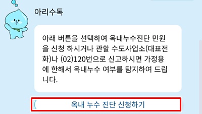 관할 수도사업소 대표번호로 전화하여 옥내누수진단을 신청할 수 있습니다.