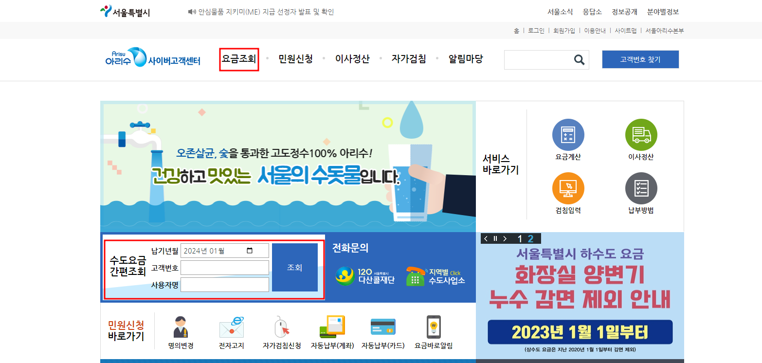 서울아리수본부에 대표 고객센터 사이트인 "아리수사이버 고객센터"에서 로그인 없이 요금조회를 할 수 있습니다.