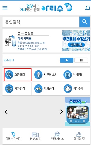앱을 열면 메인화면에 요금조회 탭이 있습니다. 고객번호와 수용가명를 입력하여 요금을 확인해주세요.
